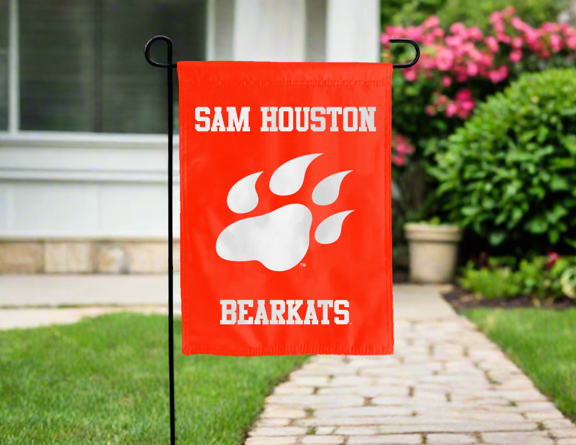 Let your voice scream “Go Bearkats!” with this NCAA Officially Licensed, 13” x 18” Sam Houston State Garden flag! Made of 2-ply polyester, this flag is the result of two flags being screen printed and sewn together with a middle liner sewn in between them to stop the see-through, allowing the logos to look clear and read correctly on both sides. The sleeve across the top makes it easy for you to insert the flag into your garden flag stand. No matter where you are, this garden flag is sure to make it clear your loyalty lies with the Sam Houston State Bearkats on game day.