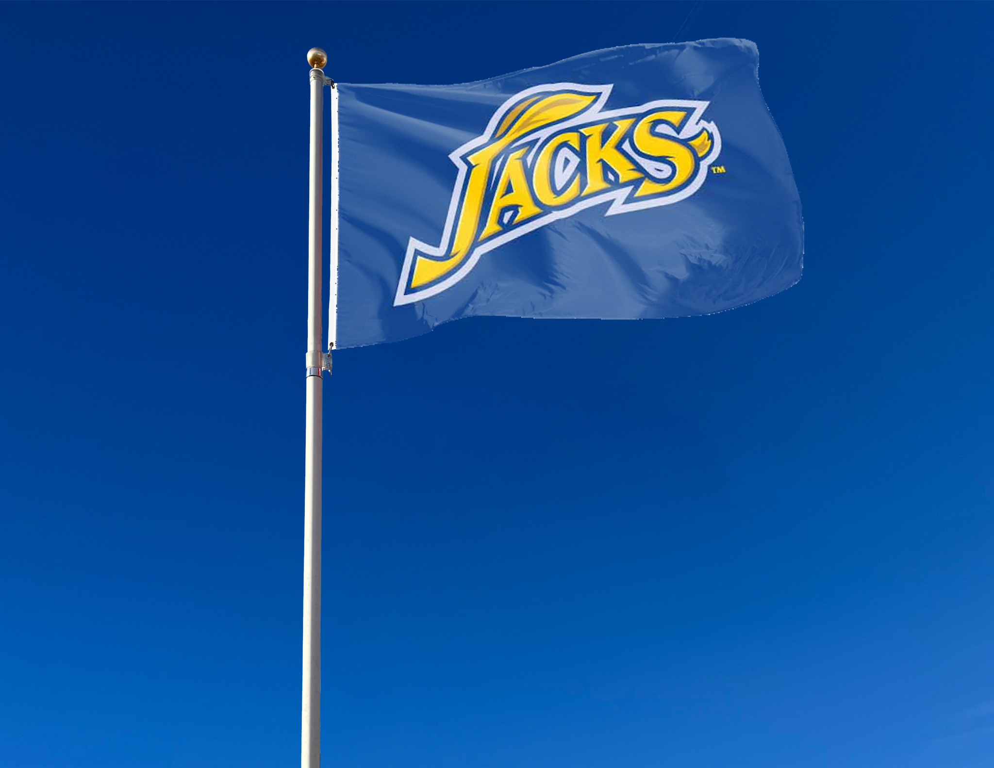 Display your Jackrabbit pride with this Officially Licensed 3’ x 5’ blue South Dakota State flag! This flag comes equipped with two metal grommets for easy attaching to your flagpole along with quadruple-parameter stitching for added strength and durability along the edge. Made of polyester and measuring 3 feet high by 5 feet wide, the Jackrabbit logo is screen printed onto both sides with the back side being a reverse image. Whether you want to attach it to the flagpole outside your home, hang it on a wall, or bring it with you to tailgate parties, this flag is a great choice for you Jackrabbit fans whose loyalty lies with South Dakota State no matter what day of the week it is.