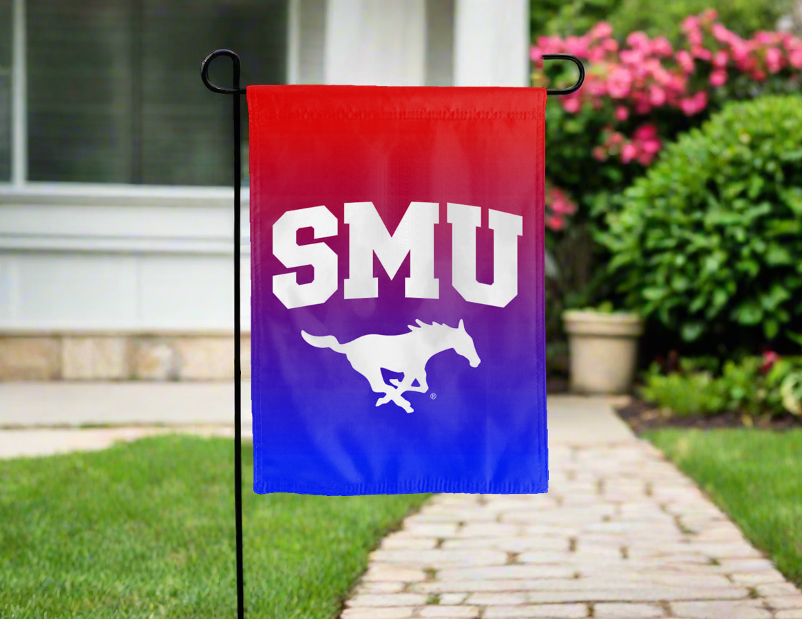 Let your voice scream “Go Mustangs!” with this NCAA Officially Licensed, 13” x 18” SMU Gradient Garden flag! Made of 2-ply polyester, this flag is the result of two flags being screen printed and sewn together with a middle liner sewn in between them to stop the see-through, allowing the logos to look clear and read correctly on both sides. The sleeve across the top makes it easy for you to insert the flag into your garden flag stand. No matter where you are, this garden flag is sure to make it clear your loyalty lies with the Southern Methodist University Mustangs on game day.