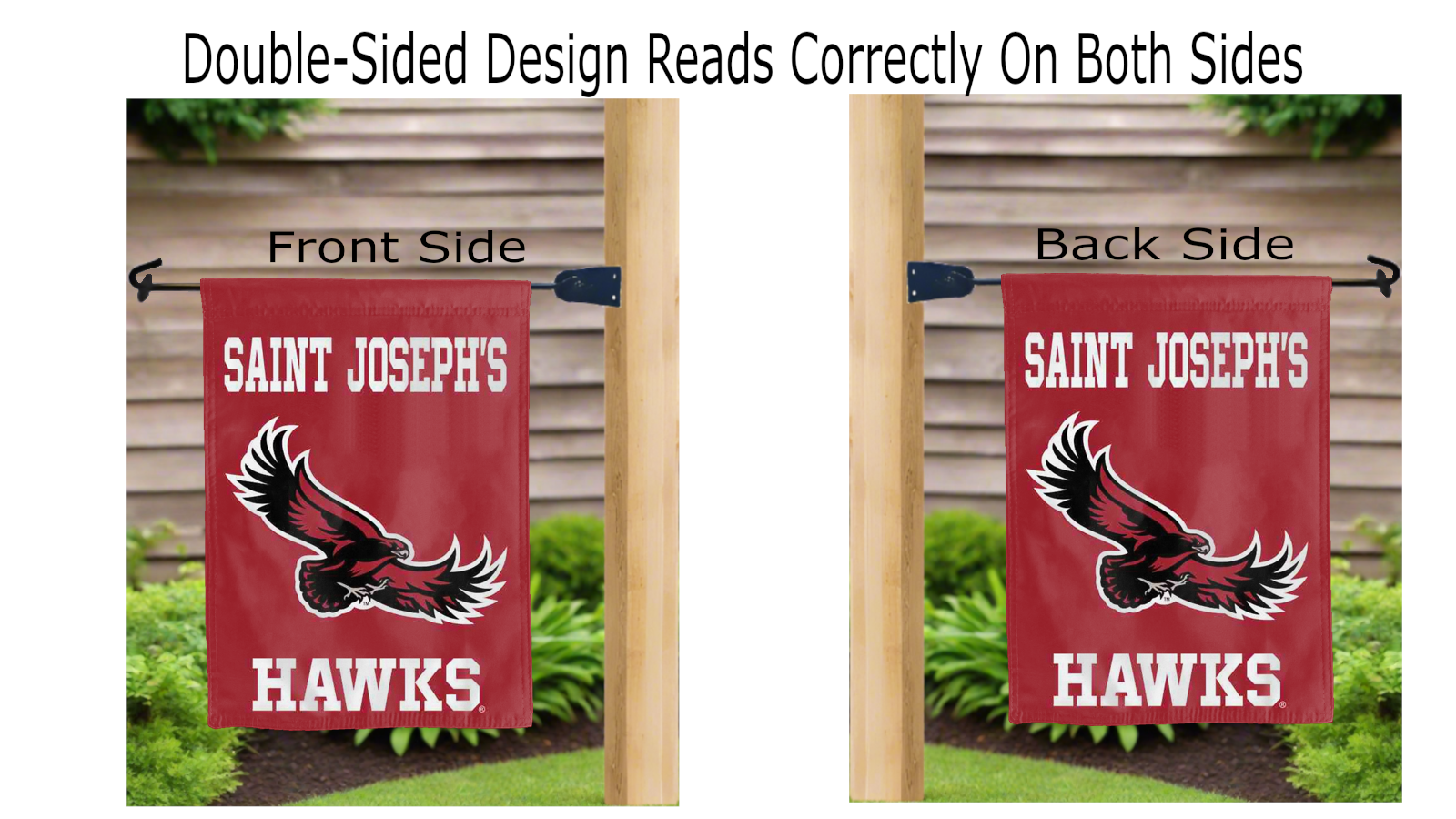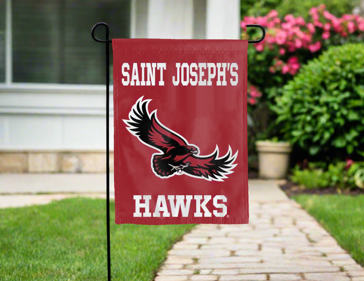 Let your voice scream “Go Hawks!” with this NCAA Officially Licensed, 13” x 18” Saint Joeph's University Garden flag! Made of 2-ply polyester, this flag is the result of two flags being screen printed and sewn together with a middle liner sewn in between them to stop the see-through, allowing the logo to look clear and read correctly on both sides. The sleeve across the top makes it easy for you to insert the flag into your garden flag stand. No matter where you are, this garden flag is sure to make it clear your loyalty lies with the Saint Joseph's University Hawks on game day.