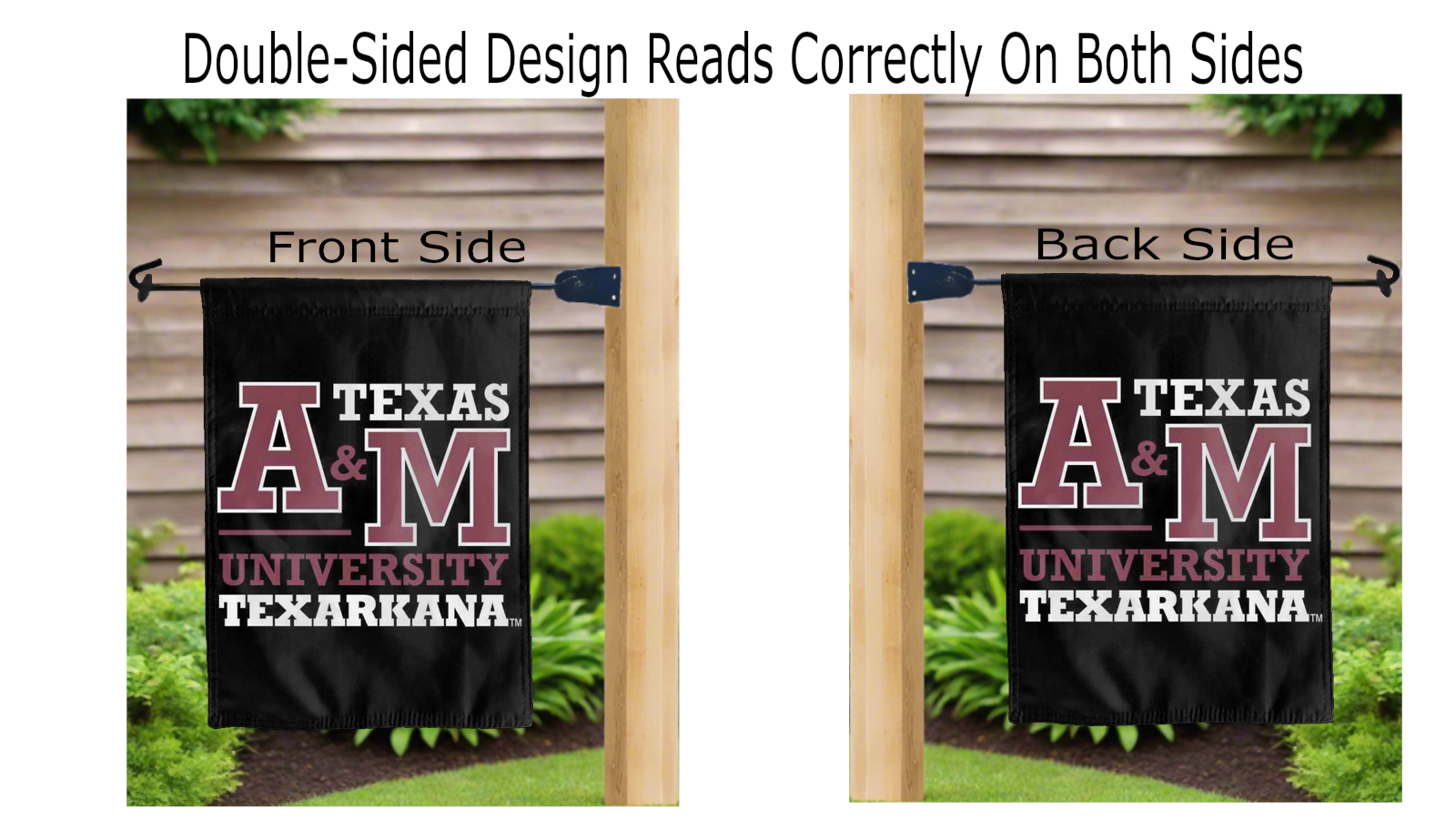 Let your voice scream "Go Eagles!" with this NCAA Officially Licensed, 13" x 18" Texas A&M University-Texarkana Garden flag! Made of 2-ply polyester, this flag is the result of two dye-sublimated flags sewn together with a middle liner sewn in between them to stop the see-through, allowing the logo to look clear and read correctly on both sides. The sleeve across the top makes it easy for you to insert the flag into your garden flag stand. No matter where you are, this garden flag is sure to make it clear your loyalty lies with the Eagles on game day.