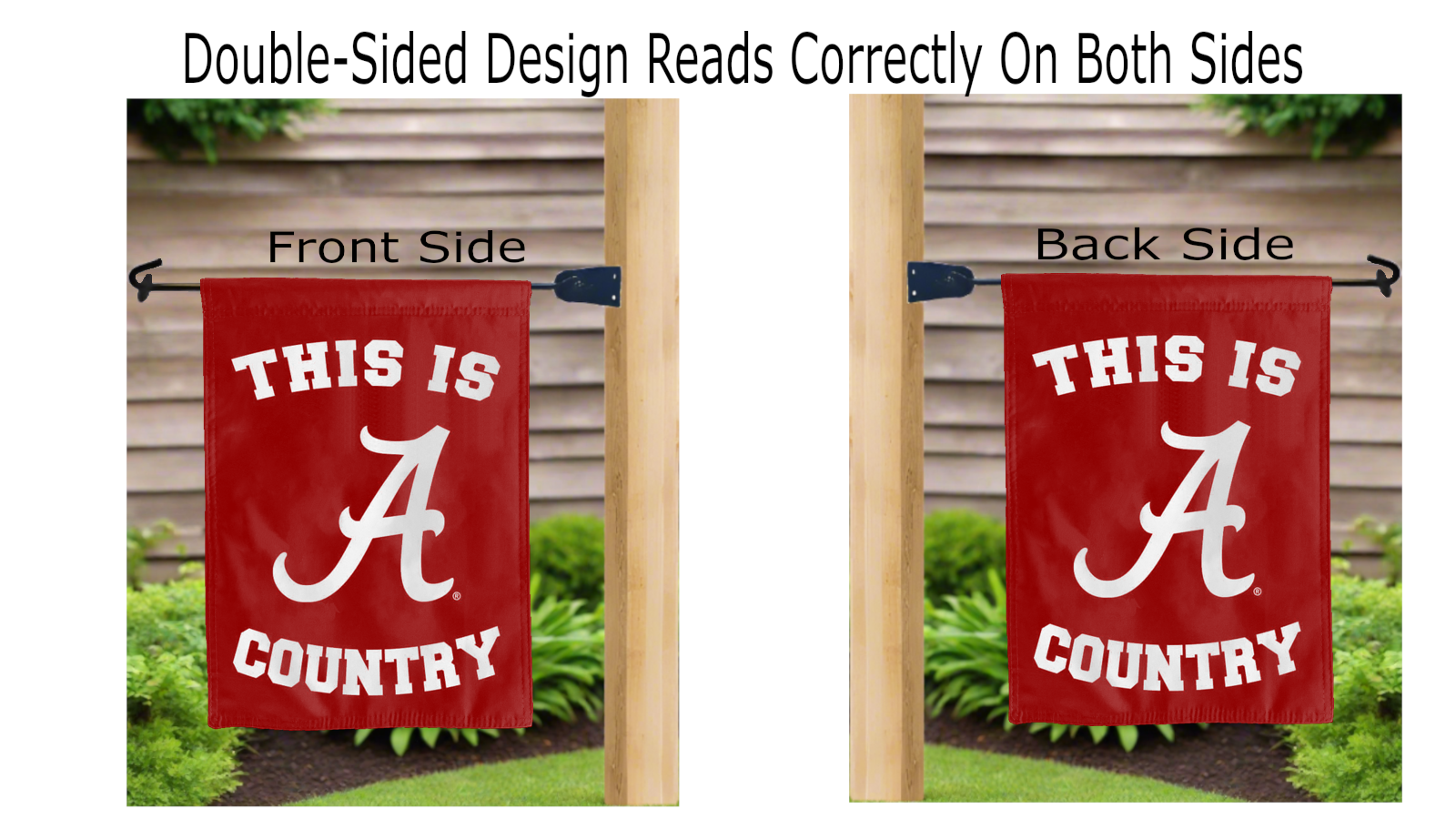 Decorate your yard with this Officially Licensed, 13" x 18" University of Alabama This Is University of Alabama Crimson Tide Country Garden Flag! Made of 2-ply polyester, this flag is the result of two dye-sublimated flags sewn together with a middle liner sewn in between them to stop the see-through, allowing the University of Alabama This Is University of Alabama Crimson Tide Country logo to look clear and read correctly on both sides. The sleeve across the top makes it easy for you to insert the flag into your garden flag stand. No matter where you are, this garden flag is sure to make it clear your loyalty lies with the University of Alabama Crimson Tide on game day.