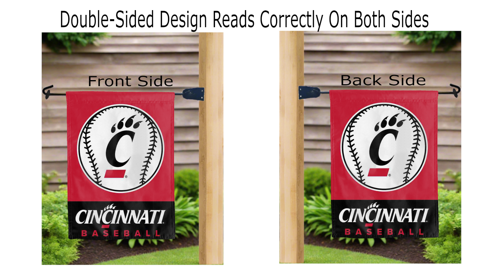 Let your voice scream “Go Bearcats!” with this NCAA Officially Licensed 13” x 18” University of Cincinnati Baseball Garden Flag! Made of 2-ply polyester, this flag is the result of two flags being screen printed and sewn together with a middle liner sewn in between them to stop the see-through, allowing the logo to look clear and read correctly on both sides. The sleeve across the top makes it easy for you to insert the flag into your garden flag stand. No matter where you are, this garden flag is sure to make it clear your loyalty lies with the Bearcats on game day.