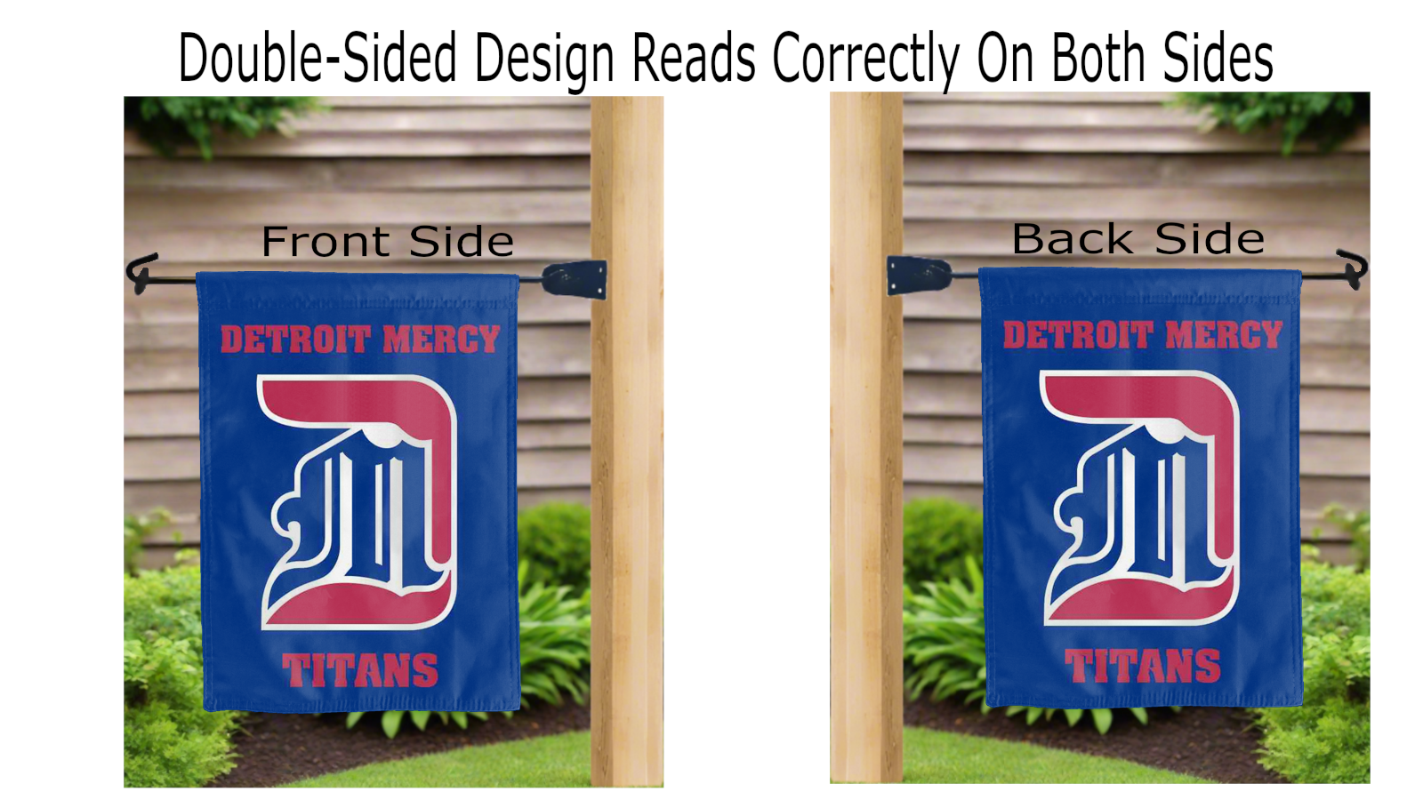 Let your voice scream "Go Titans!" with this NCAA Officially Licensed, blue 13" x 18" University of Detroit Mercy D Titans Garden flag! Made of 2-ply polyester, this flag is the result of two dye-sublimated flags sewn together with a middle liner sewn in between them to stop the see-through, allowing the University of Detroit Mercy D Titans logo to look clear and read correctly on both sides. The sleeve across the top makes it easy for you to insert the flag into your garden flag stand. No matter where you are, this garden flag is sure to make it clear your loyalty lies with the University of Detroit Mercy Titans on game day.