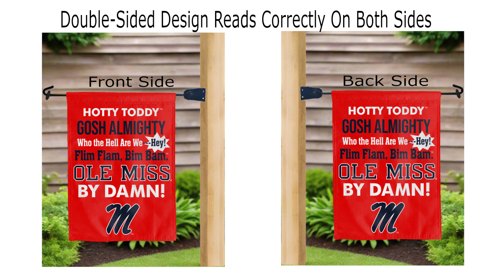 Let your voice scream “Go Rebels!” with this NCAA Officially Licensed, 13” x 18” Mississippi Ole Miss Chant Garden flag! Made of 2-ply polyester, this flag is the result of two flags being screen printed and sewn together with a middle liner sewn in between them to stop the see-through, allowing the logos to look clear and read correctly on both sides. The sleeve across the top makes it easy for you to insert the flag into your garden flag stand. No matter where you are, this garden flag is sure to make it clear your loyalty lies with the Mississippi Ole Miss Rebels on game day.