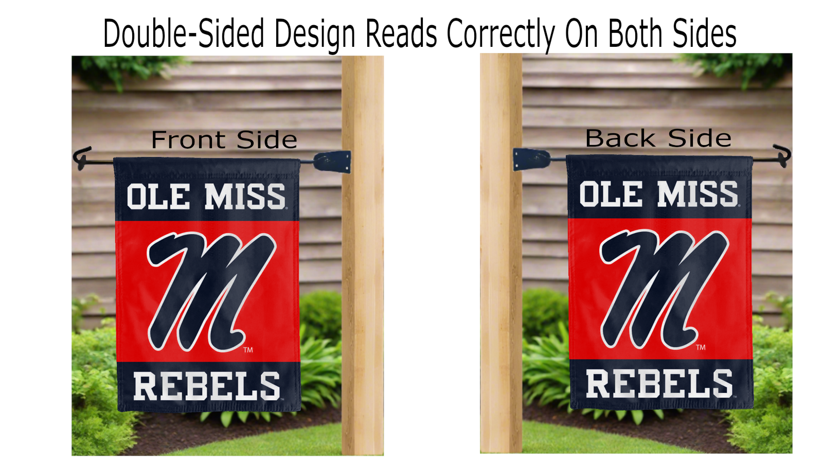 Let your voice scream "Go Rebels!" with this NCAA Officially Licensed 13" x 18" Mississippi Ole Miss Garden flag! Made of 2-ply polyester, this flag is the result of two dye-sublimated flags sewn together with a middle liner sewn in between them to stop the see-through, allowing the logo to look clear and read correctly on both sides. The sleeve across the top makes it easy for you to insert the flag into your garden flag stand. No matter where you are, this garden flag is sure to make it clear your loyalty lies with the Rebels on game day.