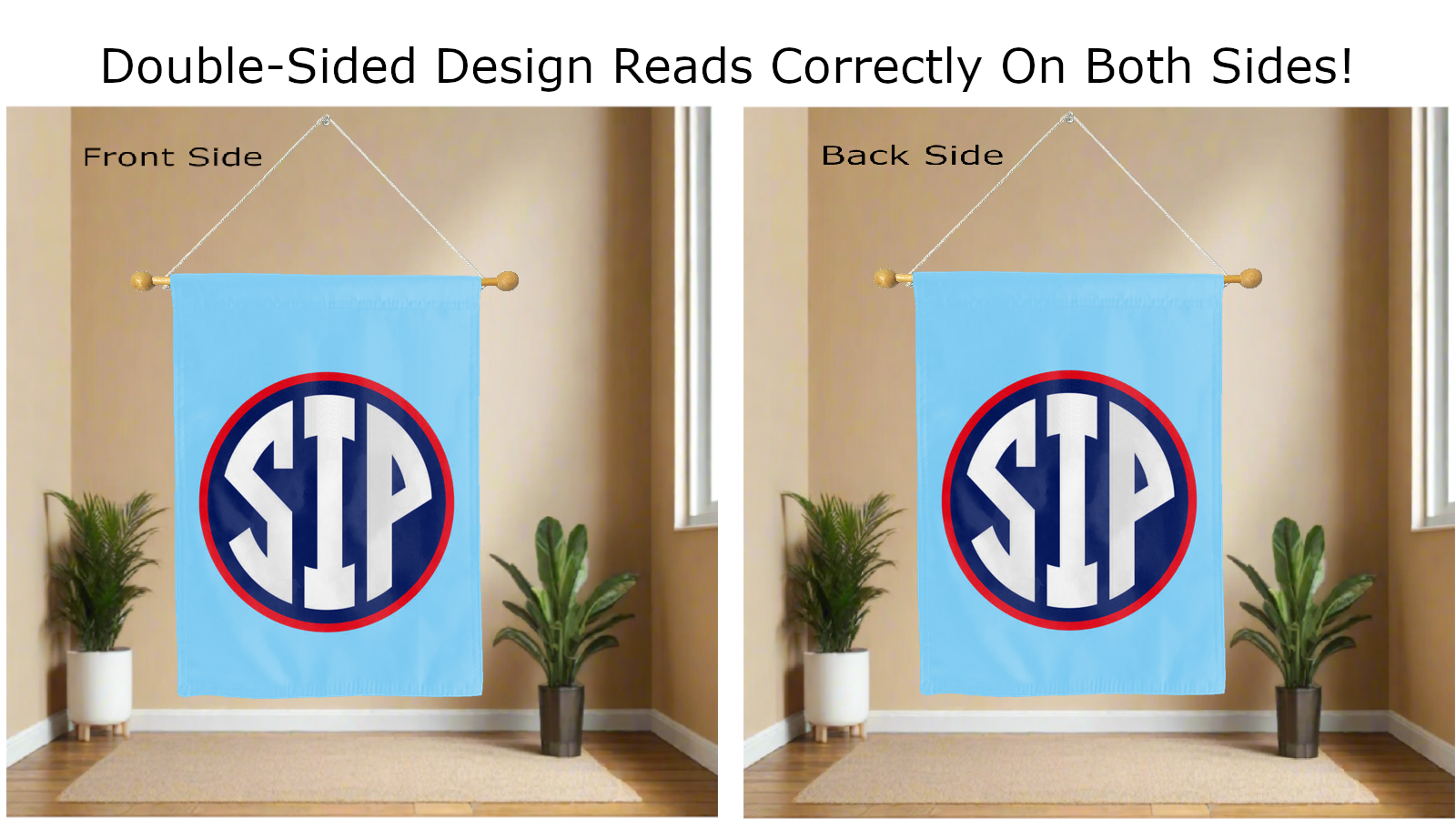 The SIP logo reads correctly on both sides of this 30" x 40" double-sided house flag, making it clear where your loyalty lies from front to back. The sleeve at the top makes it easy and fast to hang on a flag pole outside your home or on a banner pole inside your home, transforming any ordinary space into a Rebel haven.
