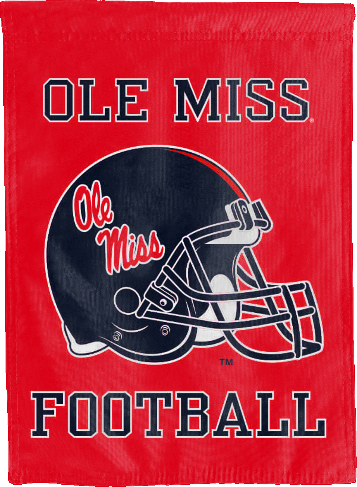 The Ole Miss Football and Helmet logos read correctly on both sides of this 30" x 40" double-sided house flag, making it clear where your loyalty lies from front to back. The sleeve at the top makes it easy and fast to hang on a flag pole outside your home or on a banner pole inside your home, transforming any ordinary space into a Rebel haven.