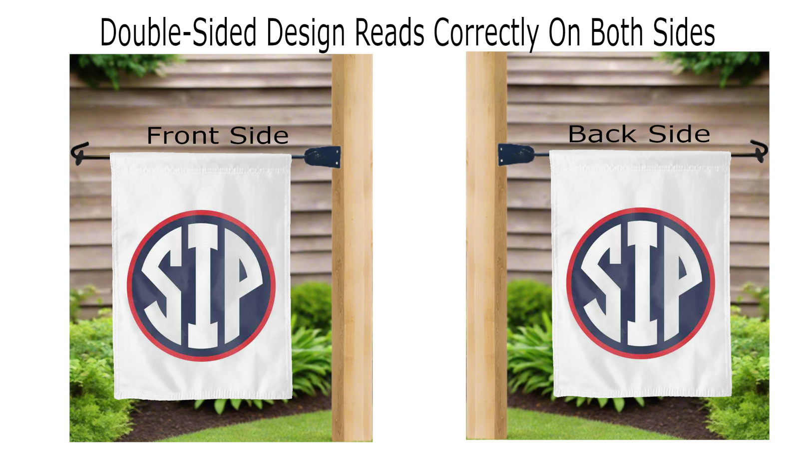 The SIP logo reads correctly on both sides of this 13" x 18" double-sided garden flag, making it clear where your loyalty lies from front to back. The sleeve at the top makes it easy and fast to hang on a garden flag stand or banner pole, transforming any ordinary space into a Rebel haven.