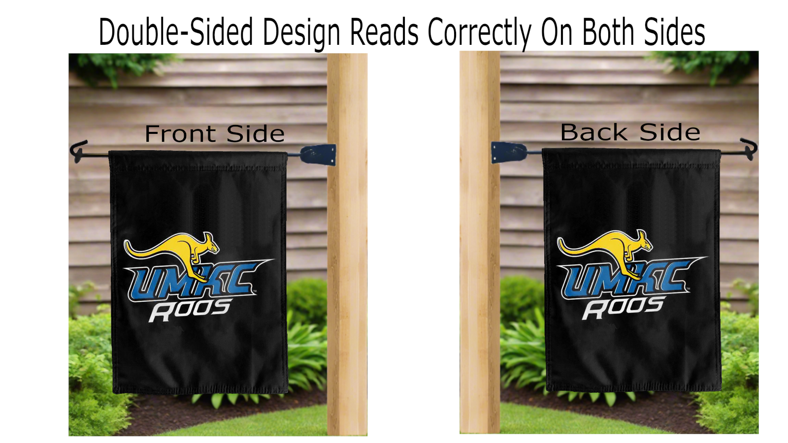 Let your voice scream "Go Roos!" with this NCAA Officially Licensed 13" x 18" UMKC Roos Garden flag! Made of 2-ply polyester, this flag is the result of two dye-sublimated flags sewn together with a middle liner sewn in between them to stop the see-through, allowing the logo to look clear and read correctly on both sides. The sleeve across the top makes it easy for you to insert the flag into your garden flag stand. No matter where you are, this garden flag is sure to make it clear your loyalty lies with the Roos on game day.