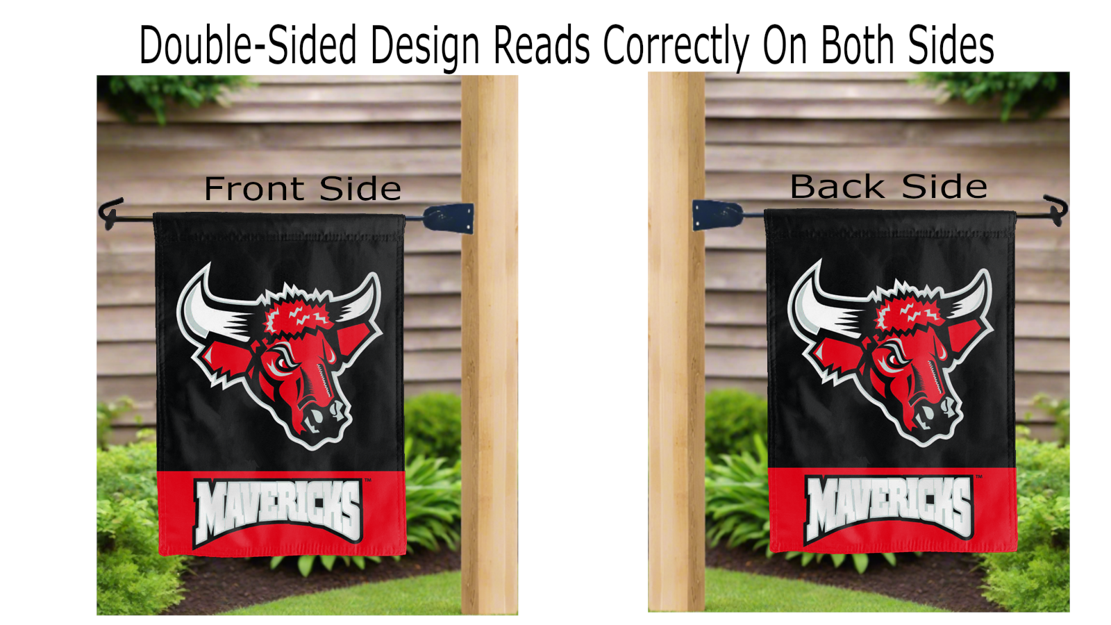 The UNO Mavericks logo reads correctly on both sides of this 13" x 18" double-sided garden flag, allowing anyone passing by to see where you stand on game day from any angle. The sleeve at the top makes it quick and easy to hang on a garden flag stand or banner pole.
