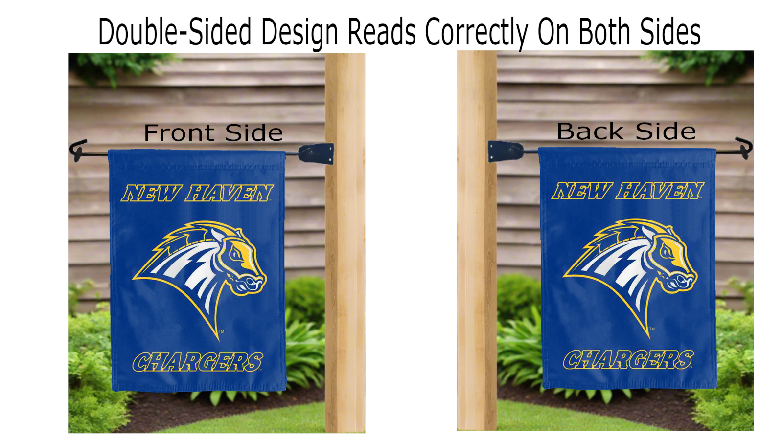 Let your voice scream “Go Chargers!” with this NCAA Officially Licensed, 13” x 18” New Haven Garden flag! Made of 2-ply polyester, this flag is the result of two flags being screen printed and sewn together with a middle liner sewn in between them to stop the see-through, allowing the logo to look clear and read correctly on both sides. The sleeve across the top makes it easy for you to insert the flag into your garden flag stand. No matter where you are, this garden flag is sure to make it clear your loyalty lies with the New Haven Chargers on game day.