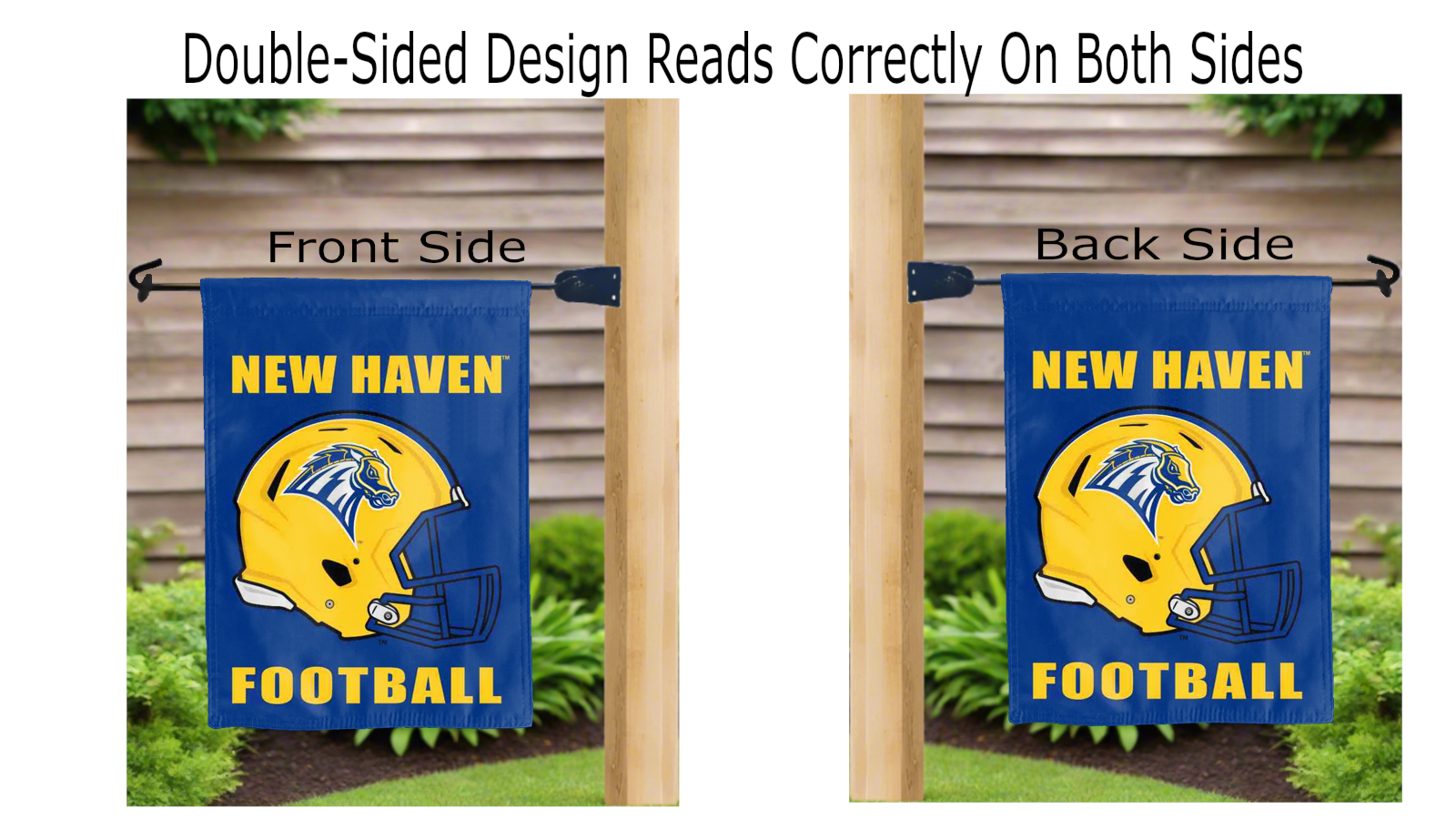 Let your voice scream "Go Chargers!" with this NCAA Officially Licensed, 13" x 18" New Haven Football Garden flag! Made of 2-ply polyester, this flag is the result of two dye-sublimated flags sewn together with a middle liner sewn in between them to stop the see-through, allowing the logo to look clear and read correctly on both sides. The sleeve across the top makes it easy for you to insert the flag into your garden flag stand. No matter where you are, this garden flag is sure to make it clear your loyalty lies with the Chargers on game day.