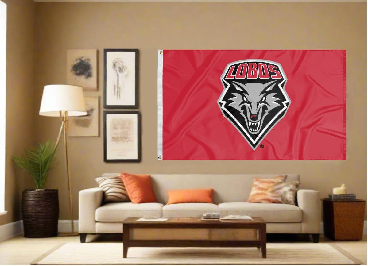Break the monotonous look of your yard with this Officially Licensed University of New Mexico 3' x 5' Flag! The logo is screen printed on both sides of this polyester flag with the back side being a reverse image. This flag also comes with 2 metal grommets for easy attaching to the flagpole and quadruple-parameter stitching along the edge for added strength and durability. No matter who you are, this flag is a splendid choice for any University of New Mexico Lobos fans looking to add some flair to their yard.