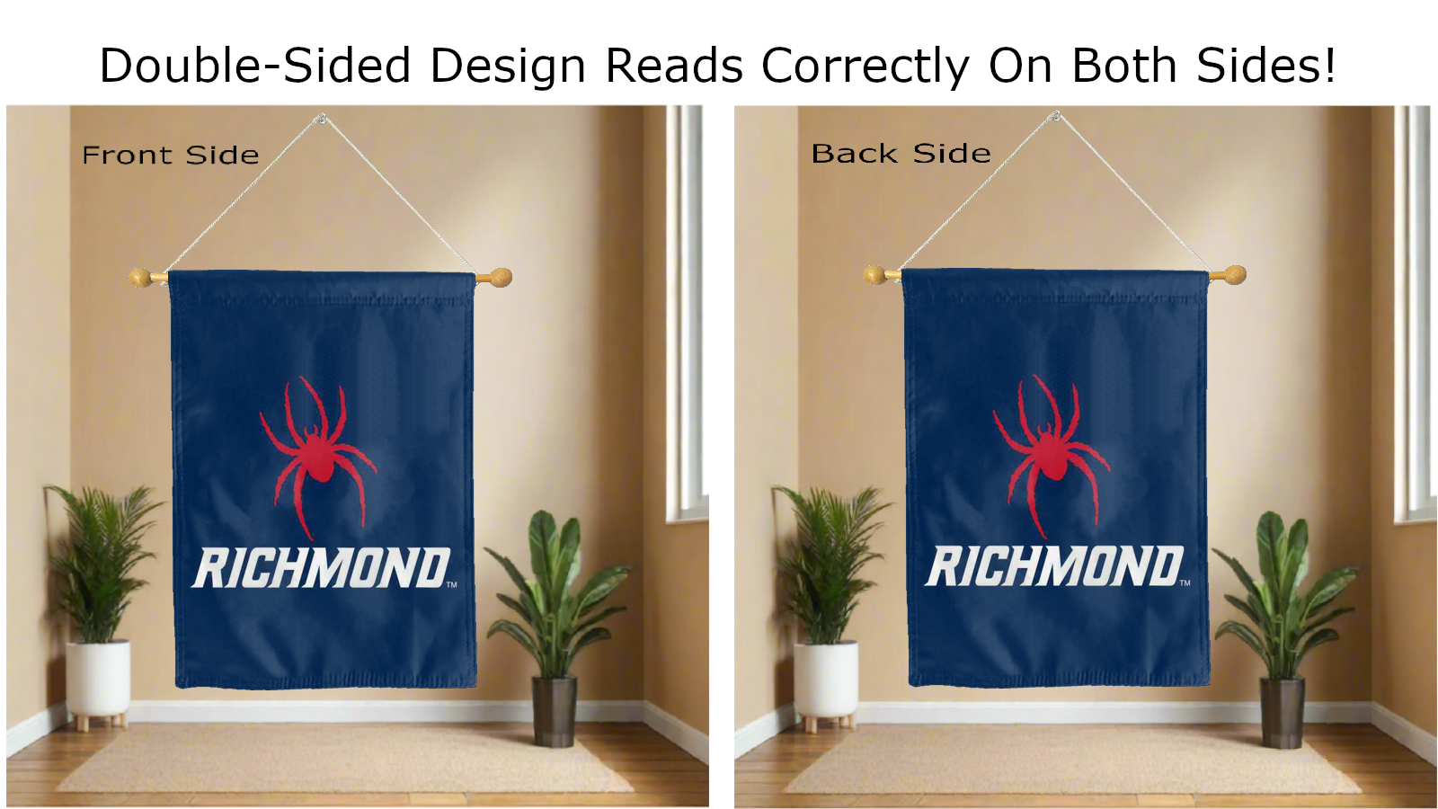 Break the monotonous look of your room with this Officially Licensed University of Richmond House Flag! Measuring 30" x 40", this house flag is the product of two screen-printed flags sewn together with a middle liner sewn in between the two flags to stop the see-through and allow the logo to read correctly on both sides. The sleeve across the top also makes it easy to insert the flag into a flagpole or flag hanger if you choose to hang it outside your home. Regardless of where you choose to hang it, this University of Richmond House Flag is sure to reflect your school pride any day of the week.