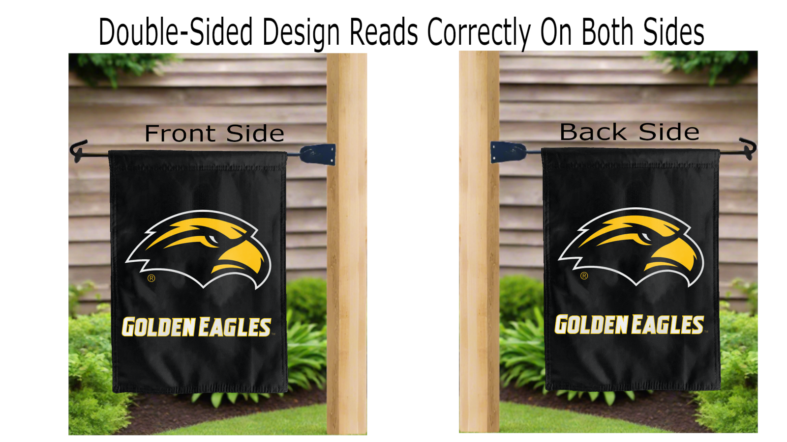 Let your voice scream “Go Golden Eagles!” with this NCAA Officially Licensed, 13” x 18” University of Southern Mississippi Garden flag! Made of 2-ply polyester, this flag is the result of two flags being screen printed and sewn together with a middle liner sewn in between them to stop the see-through, allowing the logo to look clear and read correctly on both sides. The sleeve across the top makes it easy for you to insert the flag into your garden flag stand. No matter where you are, this garden flag is sure to make it clear your loyalty lies with the University of Southern Mississippi Golden Eagles on game day.