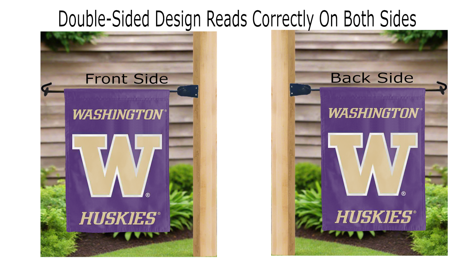 Let your voice scream “Go Huskies!” with this NCAA Officially Licensed, 13” x 18” University of Washington Huskies Garden flag! Made of 2-ply polyester, this flag is the result of two flags being screen printed and sewn together with a middle liner sewn in between them to stop the see-through, allowing the Huskies logos to look clear and read correctly on both sides. The sleeve across the top makes it easy for you to insert the flag into your garden flag stand. No matter where you are, this garden flag is sure to make it clear your loyalty lies with the University of Washington Huskies on game day.