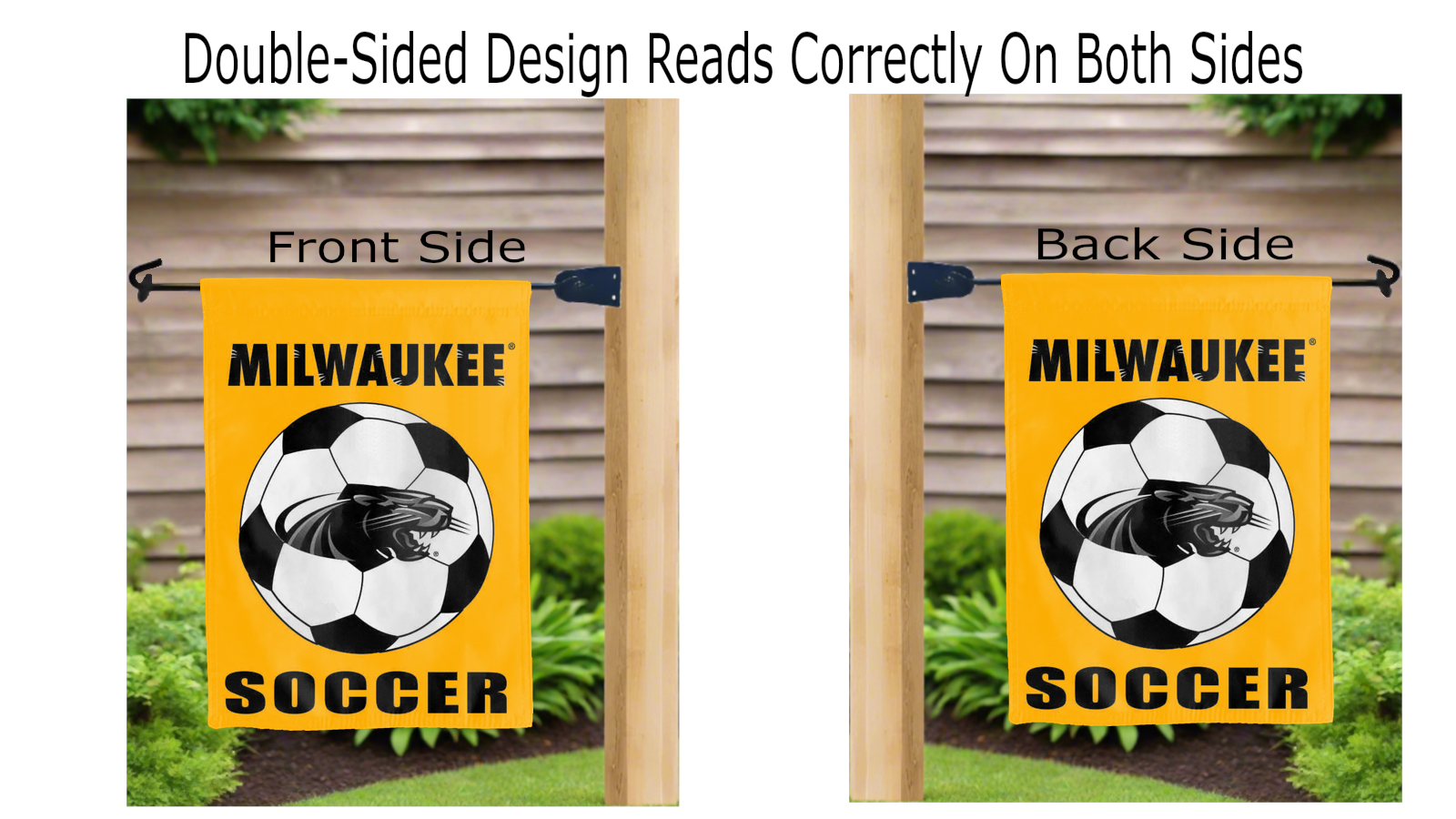 Let your voice scream "Go Panthers!" with this NCAA Officially Licensed, 13" x 18" University of Wisconsin-Milwaukee Panthers Soccer Garden flag! Made of 2-ply polyester, this flag is the result of two dye-sublimated flags sewn together with a middle liner sewn in between them to stop the see-through, allowing the University of Wisconsin-Milwaukee Panthers Soccer logo to look clear and read correctly on both sides. The sleeve across the top makes it easy for you to insert the flag into your garden flag stand. No matter where you are, this garden flag is sure to make it clear your loyalty lies with the University of Wisconsin-Milwaukee Panthers on game day.