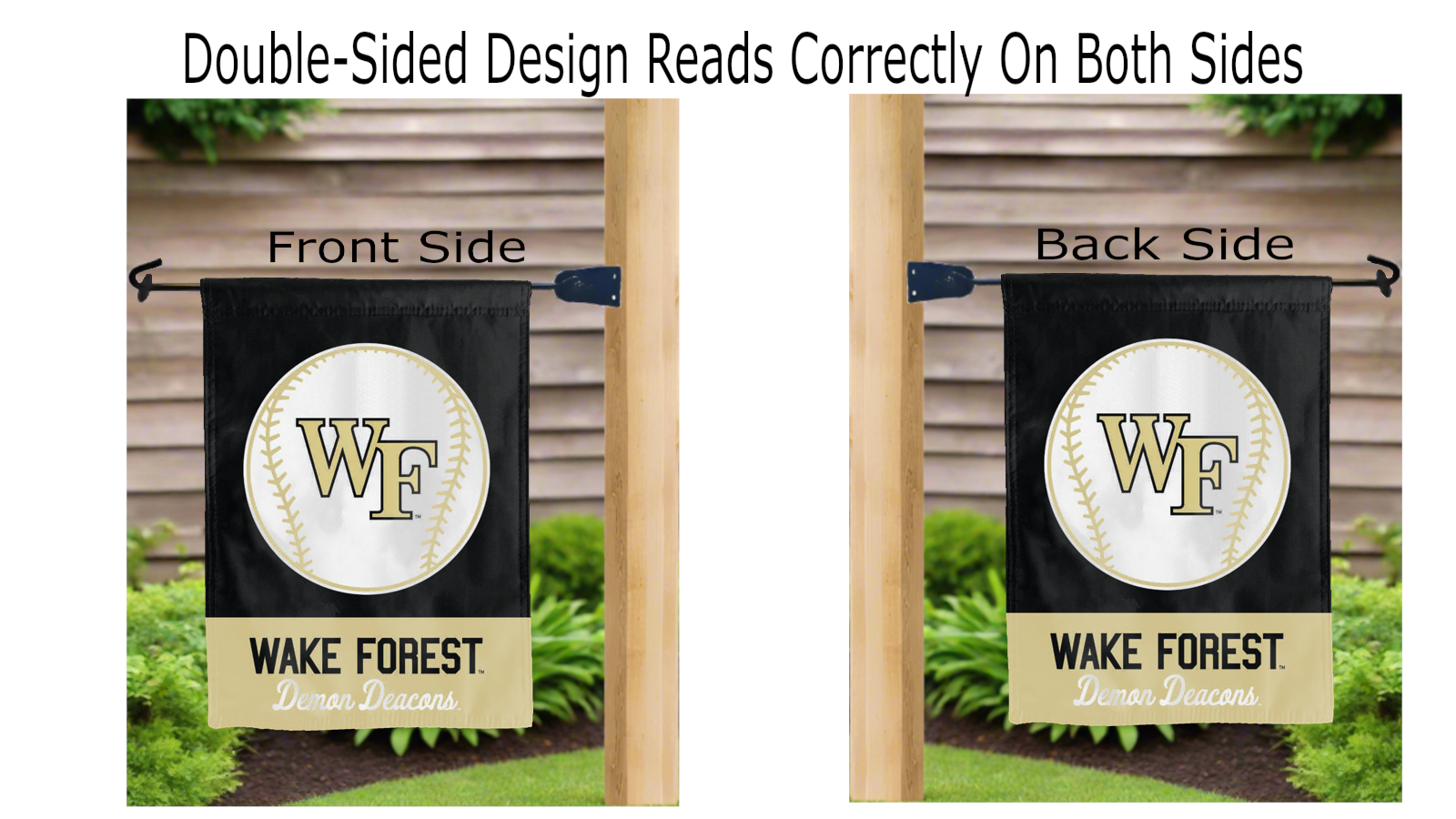 Let your voice scream "Go Demon Deacons!" with this NCAA Officially Licensed, 13" x 18" Wake Forest Baseball Garden Flag! Made of 2-ply polyester, this flag is the result of two dye-sublimated flags sewn together with a middle liner sewn in between them to stop the see-through, allowing the Wake Forest Baseball logo to look clear and read correctly on both sides. The sleeve across the top makes it easy for you to insert the flag into your garden flag stand. No matter where you are, this garden flag is sure to make it clear your loyalty lies with the Wake Forest University Demon Deacons on game day.
