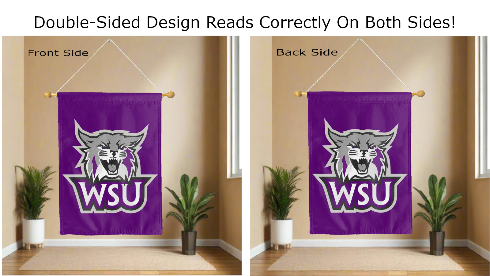 Break the monotonous look of your room with this Officially Licensed Weber State University Wildcats House Flag! Measuring 30" x 40", this house flag is the product of two screen-printed flags sewn together with a middle liner sewn in between the two flags to stop the see-through and allow the Weber State University Wildcats logo to read correctly on both sides. The sleeve across the top also makes it easy to insert the flag into a flagpole or flag hanger if you choose to hang it outside your home. Regardless of where you choose to hang it, this Weber State University Wildcats House Flag is sure to reflect your school pride any day of the week.