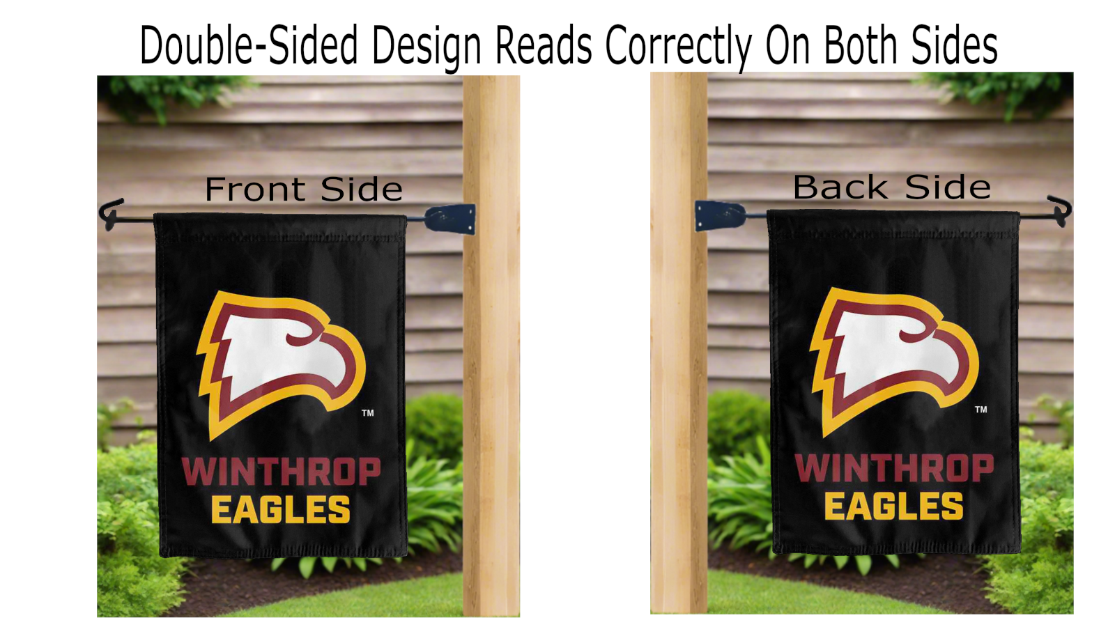 Let your voice scream “Go Winthrop Eagles!” with this NCAA Officially Licensed, 13” x 18” Winthrop University Eagles Garden flag! Made of 2-ply polyester, this flag is the result of two flags being screen printed and sewn together with a middle liner sewn in between them to stop the see-through, allowing the Winthrop University Eagles logos to look clear and read correctly on both sides. The sleeve across the top makes it easy for you to insert the flag into your garden flag stand. No matter where you are, this garden flag is sure to make it clear your loyalty lies with the Winthrop University Eagles on game day.