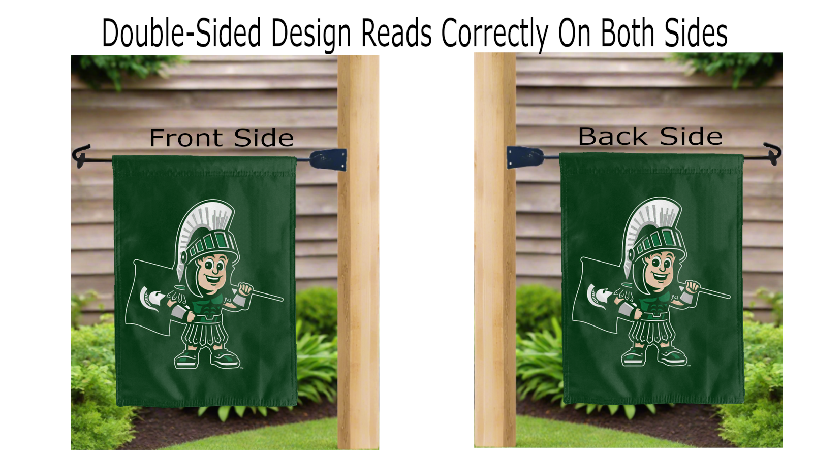 Let your voice scream "Go Spartans!" with this NCAA Officially Licensed Michigan State Garden Flag with Sparty the Spartan Logo! Made of 2-ply polyester, this 13" x 18" garden flag is the result of two dye-sublimated flags sewn together with a middle liner sewn in between them to stop the see-through, allowing the Sparty the Spartan logo to look clear and read correctly on both sides. The sleeve across the top makes it easy for you to insert the flag into your garden flag stand. No matter where you are, this Michigan State garden flag is sure to make it clear your loyalty lies with the Spartans on game day.