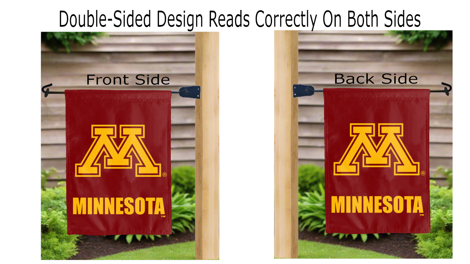 Let your voice scream “Go Gophers!” with this NCAA Officially Licensed, 13” x 18” Minnesota Gophers Garden flag! Made of 2-ply polyester, this flag is the result of two flags being screen printed and sewn together with a middle liner sewn in between them to stop the see-through, allowing the logos to look clear and read correctly on both sides. The sleeve across the top makes it easy for you to insert the flag into your garden flag stand. No matter where you are, this garden flag is sure to make it clear your loyalty lies with the Minnesota Gophers on game day.